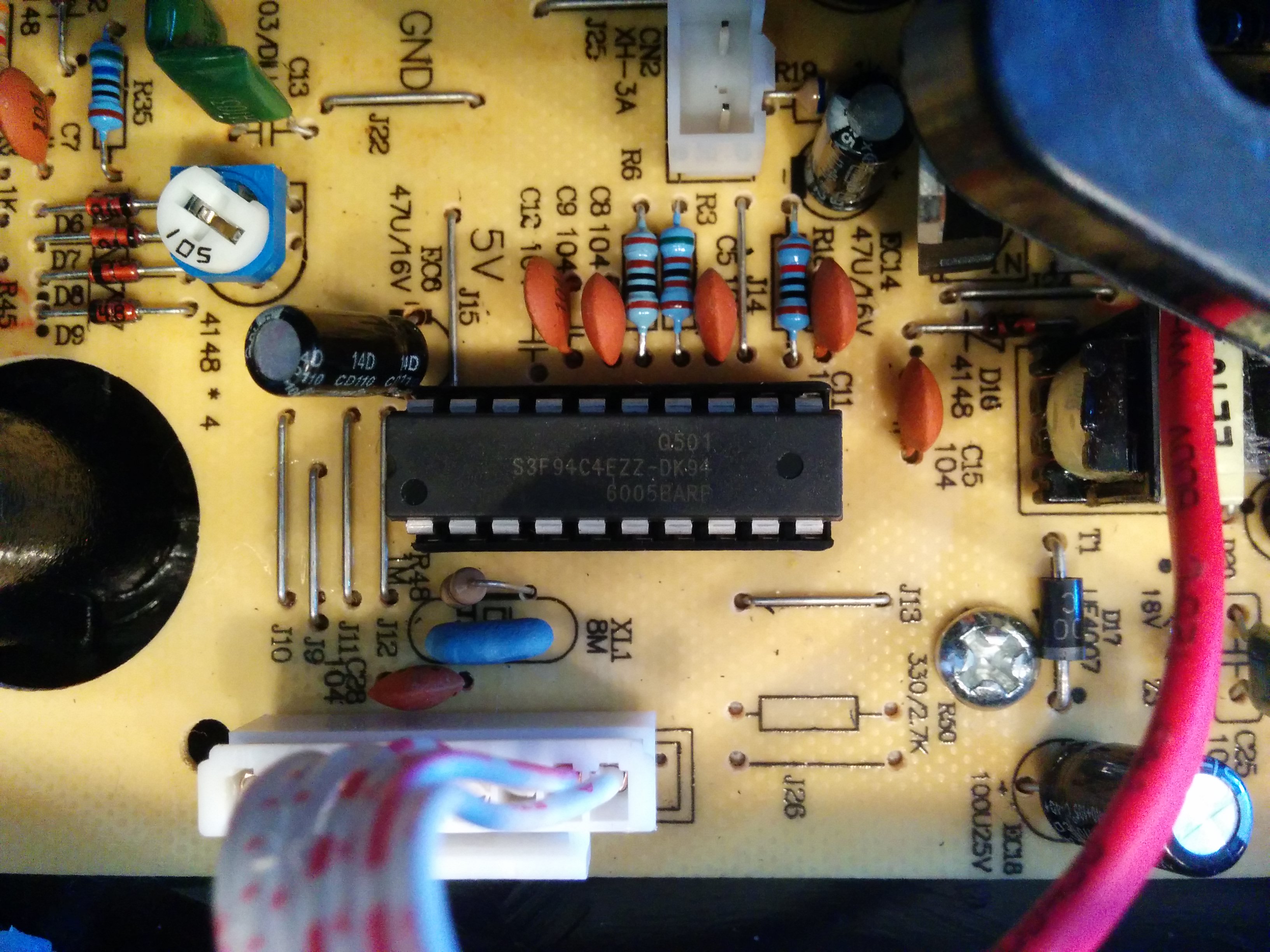 Auf der Hauptplatine ist noch ein Mikrocontroller und noch ein IC den ich nicht ablesen kann...