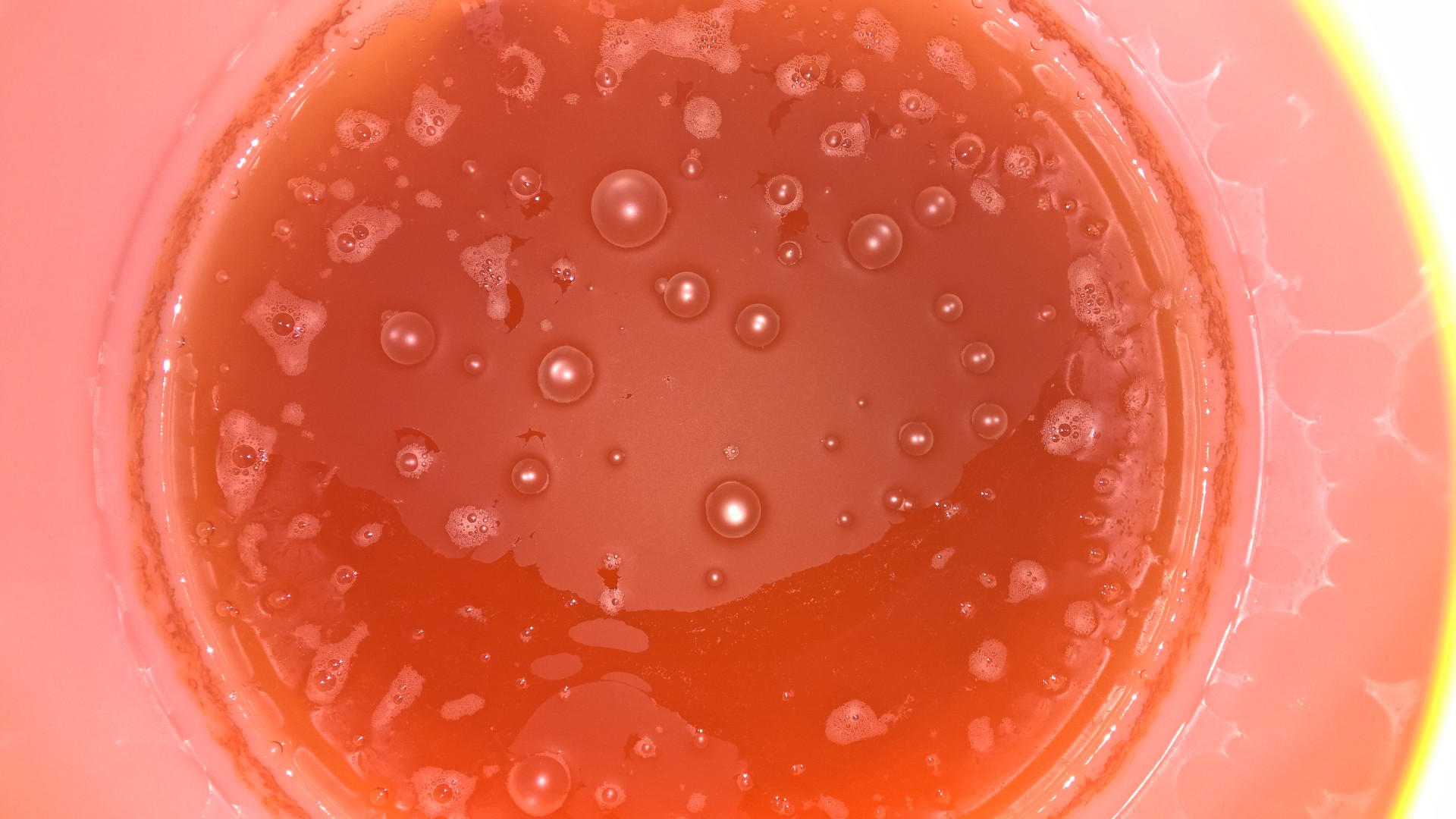 Bei meinem letzten Sud habe ich dann 10l abgezweigt und den Starter dazugegeben. Ich wollte damit eigentlich nur die Hefe vermehren. Nach 10 Tagen waren die 10l durch. Es roch gut und sah auch normal aus. Ich hatte aber keine Zeit das Jungbier runterzunehmen und die Hefe in den Kühlschrank zu tun. Also dachte ich mir lass das Zeug einfach noch ne Woche im Gärfass. Nun gucke ich gestern und habe auf dme Jungbier ebenfalls die Frischhaltefolie...