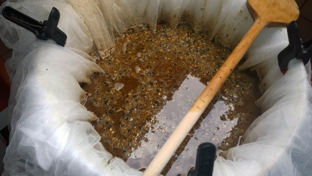 Die Gardinenmethode wird wohl nocht meine werden, evtl probiere ich es mit einem Maischesack nochmals, das Stoffzeug hängt gerne am Holzlöffel fest