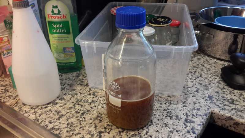 Wieder abseihen, abkühlen und mit einem Löffel WLP023 Burton Ale vom letzten Sud ansetzen.