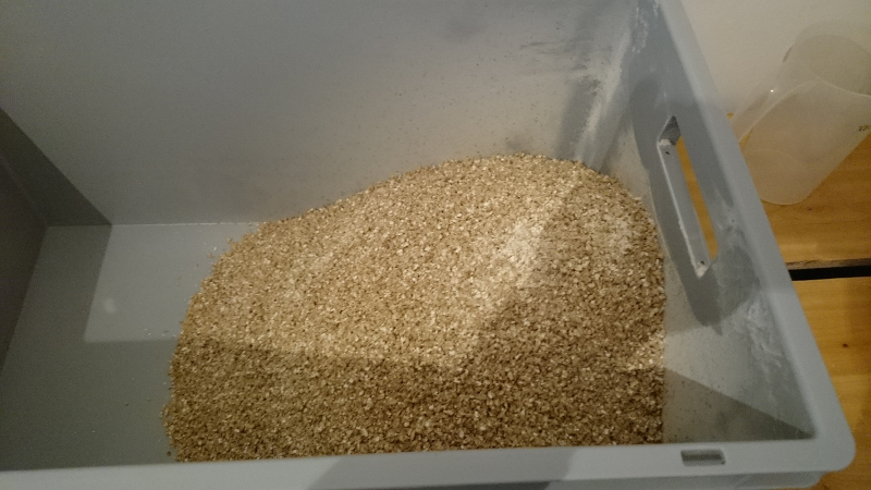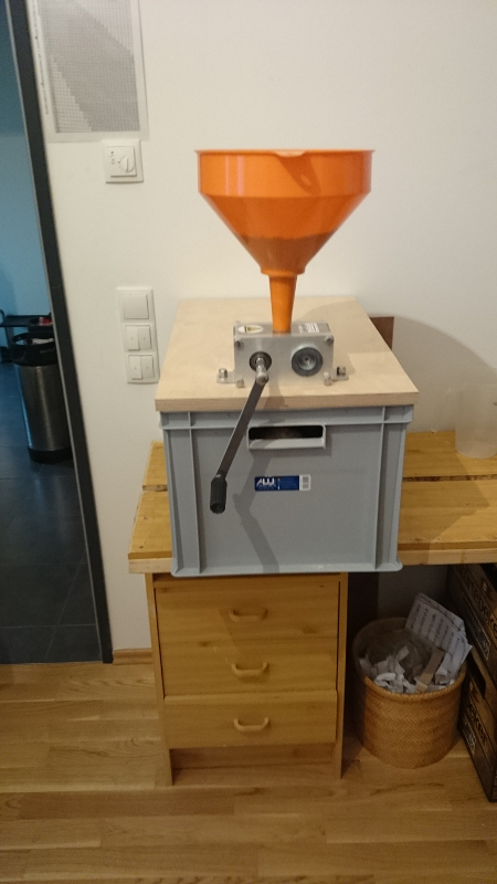 Geschrotet wurde von Hand mit der neuen MattMill kompakt und einem hier im Forum vorgeschlagenen Unterbau.