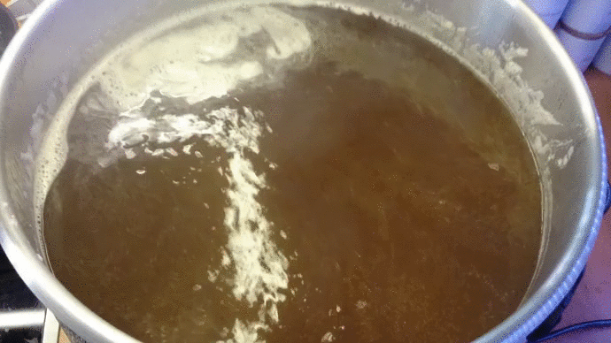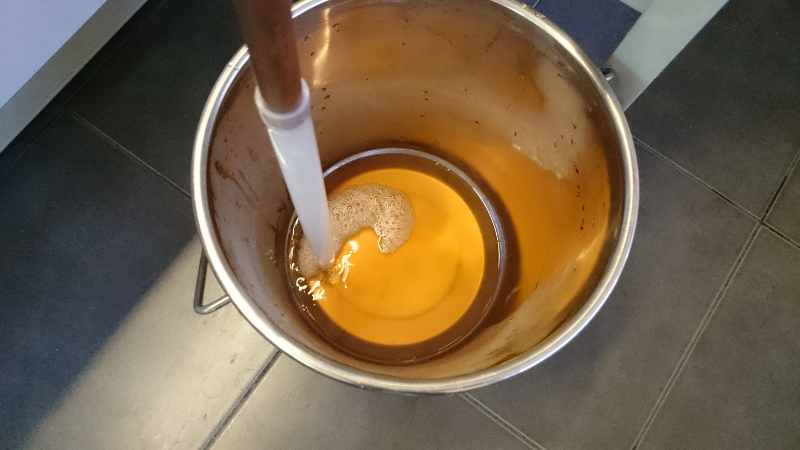 Rausgekommen sind ca. 14l mit 25 brix. Die werde ich morgen noch verdünnen und dann mit der T-58 anstellen. Jetzt kühlt der Sud erst einmal über Nacht ab.