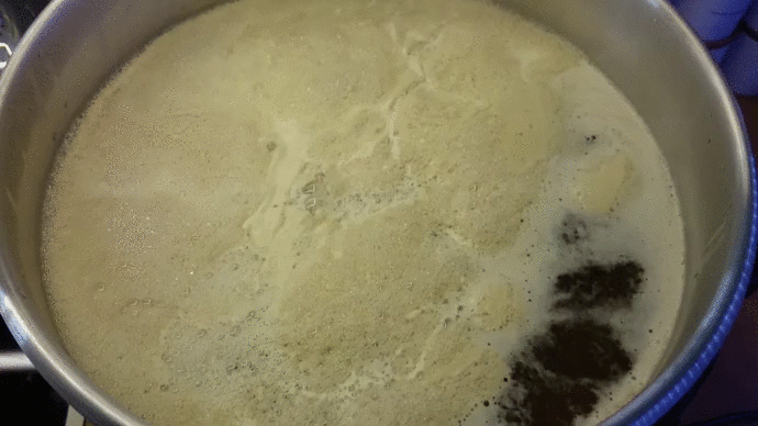 Da ich bereits ab halber Pfanne den Einkocher auf kochen stelle, kocht es bei Pfannevoll auch schon los.