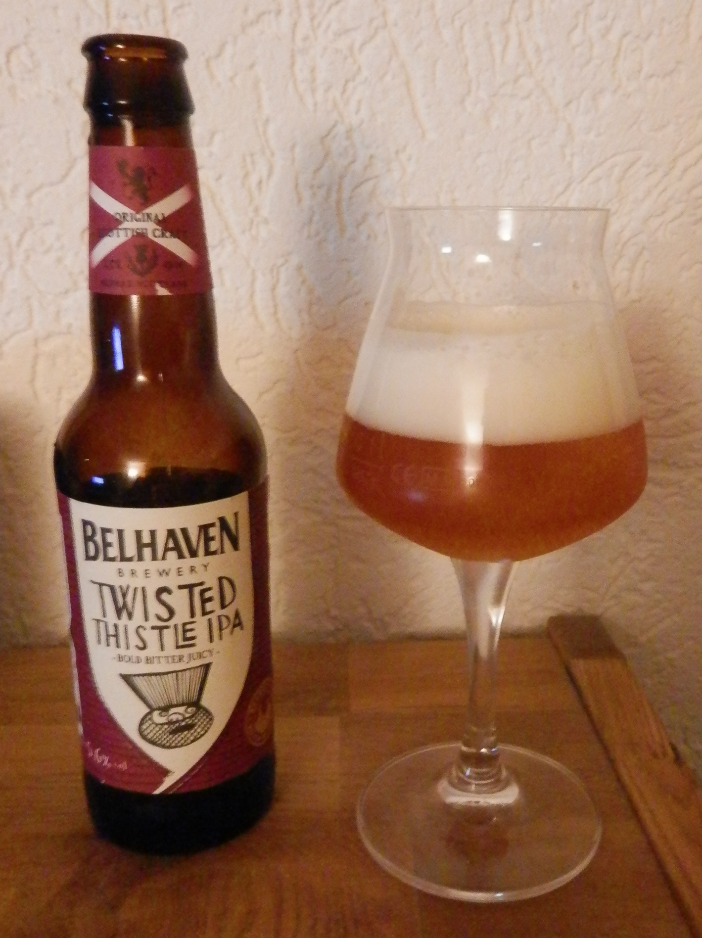 nachdem ich heute mal seit längerer Zeit wieder bei Rudat in Dortmund war, habe ich mir mal ein paar mir noch unbekannte und vielversprechende Köstlichkeiten besorgt. Heute nun das Twisted Thistle IPA der Schottischen Brauerei Belhaven.