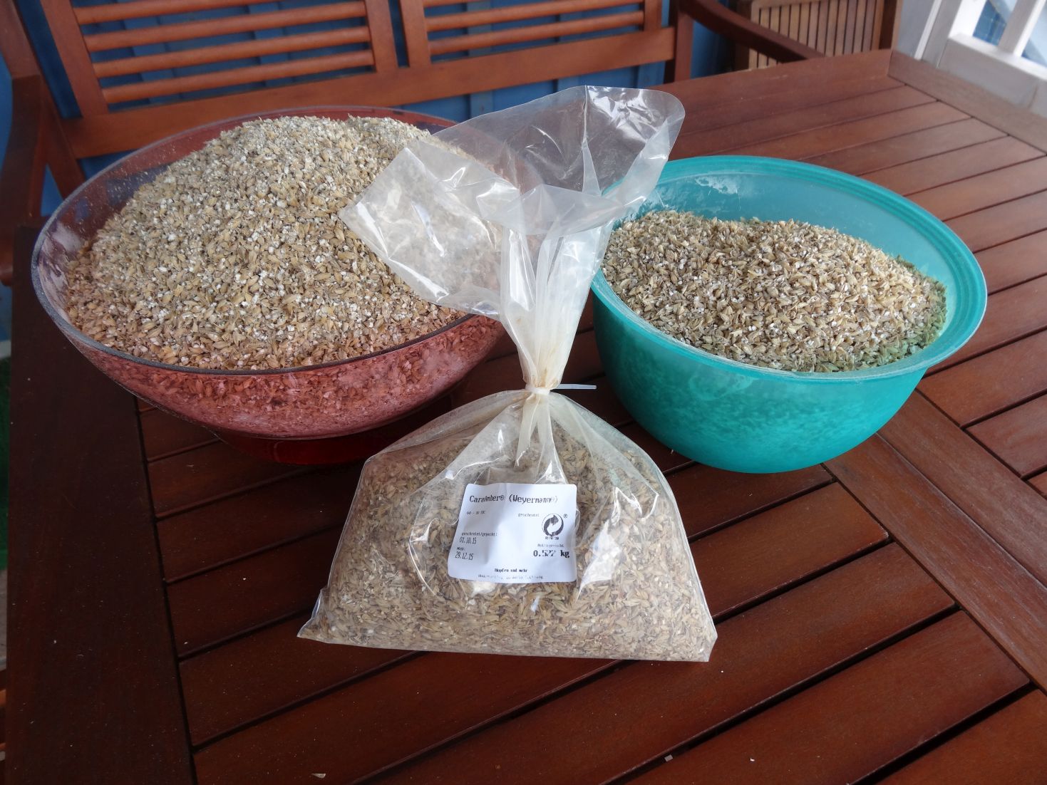 Gegen 11 Uhr am Samstag ging es dann los: Malz abgewogen bzw. hergerichtet, das Wasser hat die Einmaischtemperatur erreicht...