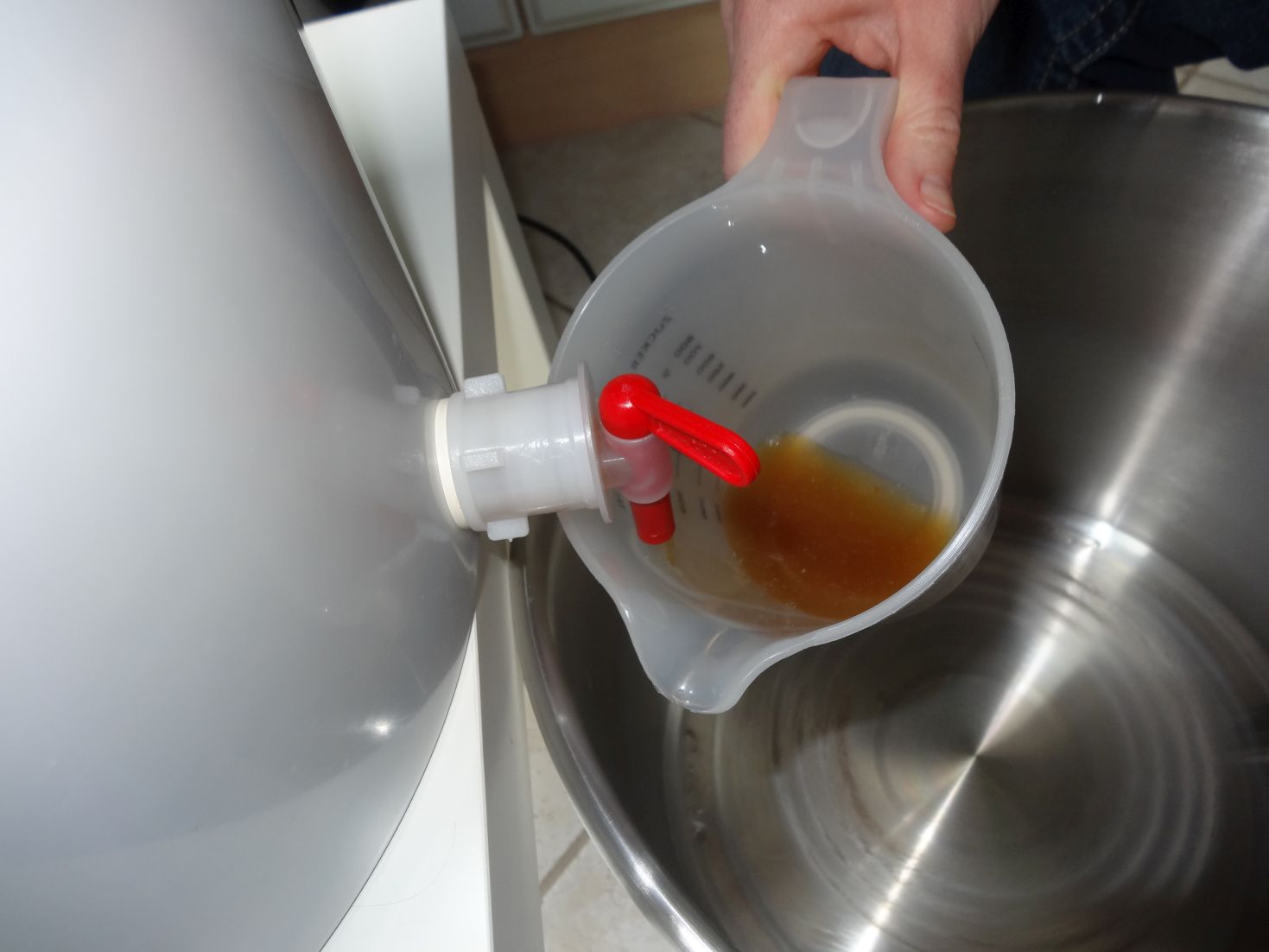 So, dann schon mal spasseshalber die Vorderwürze gespindelt, umgerechnet 16,28°P, aber es kommen ja noch ein paar Liter Nachguss.