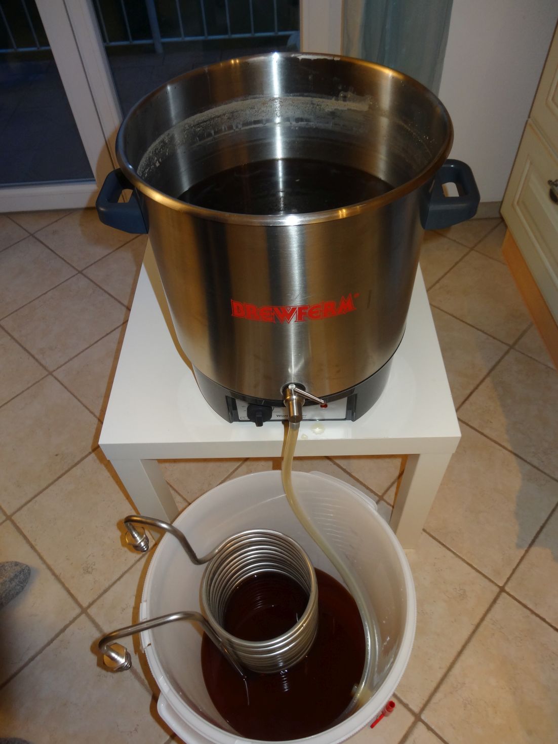 Zum ersten Mal kommt unser niegelnagelneuer Würzekühler zum Einsatz... wow geht das schnell, keine 5 Minuten und wir waren schon auf 80 Grad runter.