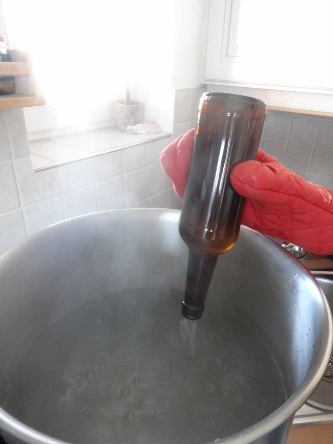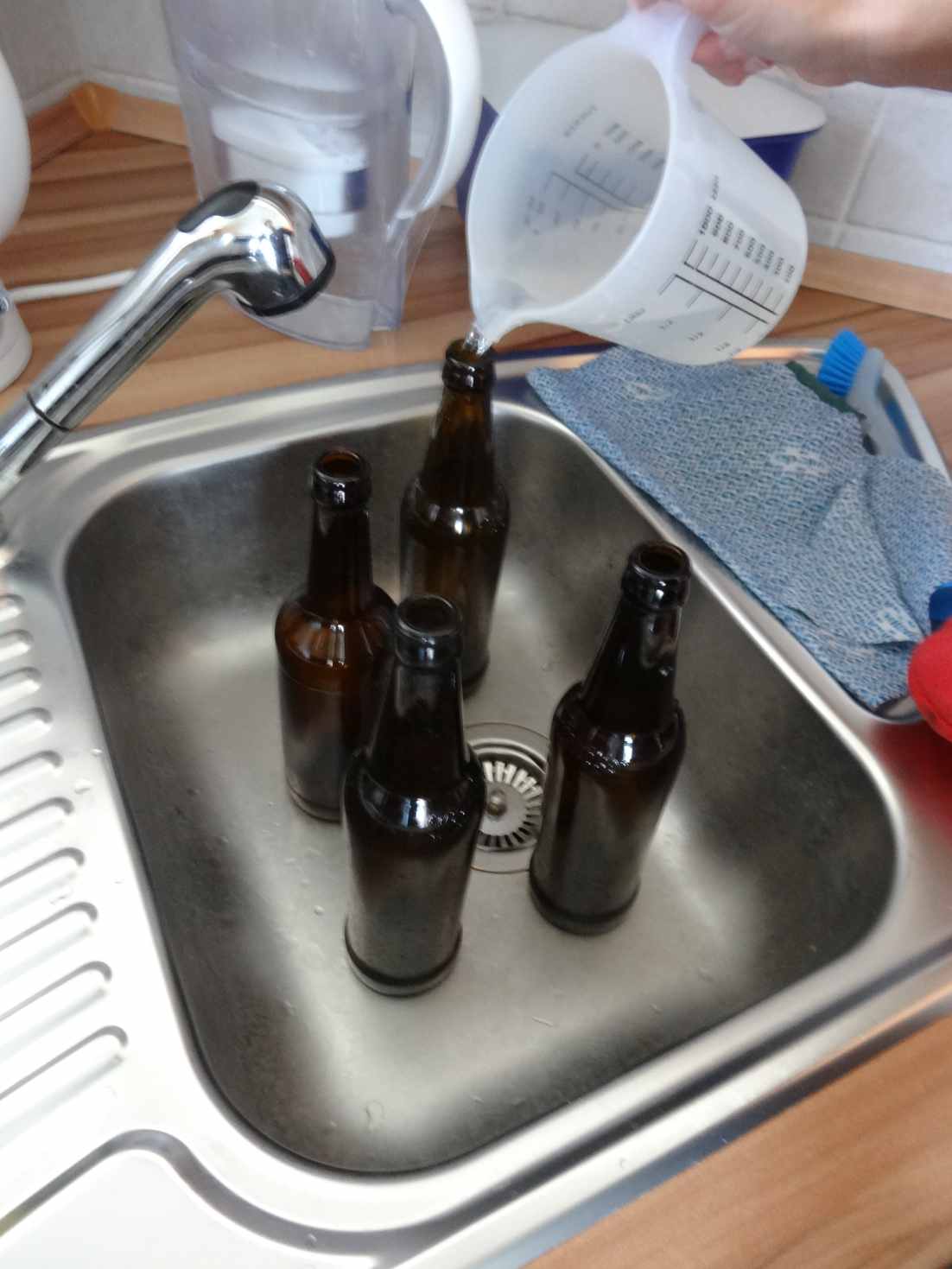 Erst mal die Flaschen final säubern (mit kochendem Wasser), abtropfen und abkühlen lassen...