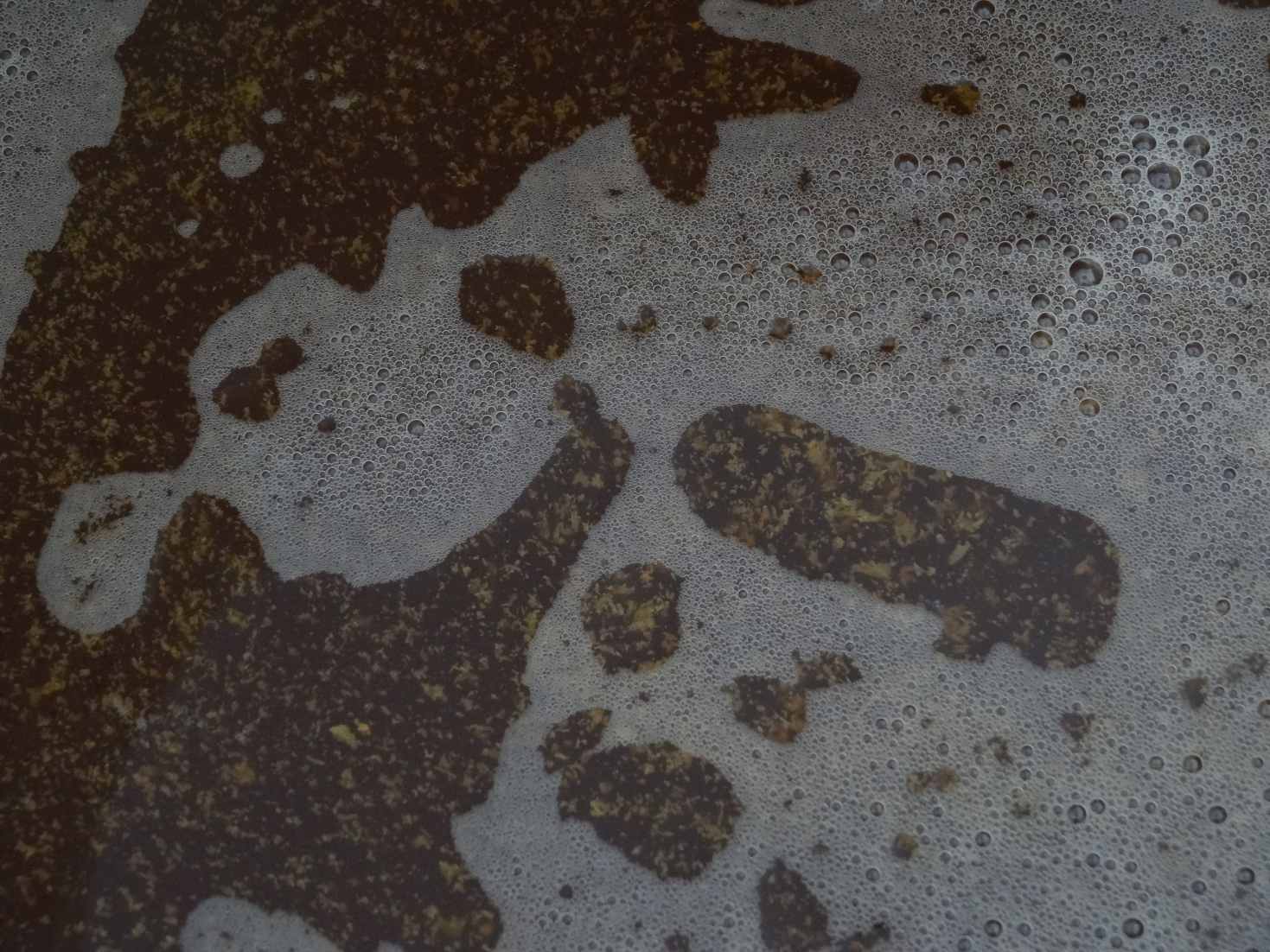 Reste der aufgelösten Pellets vom Hopfenstopfen schwimmen auf dem See... äh... Bier.