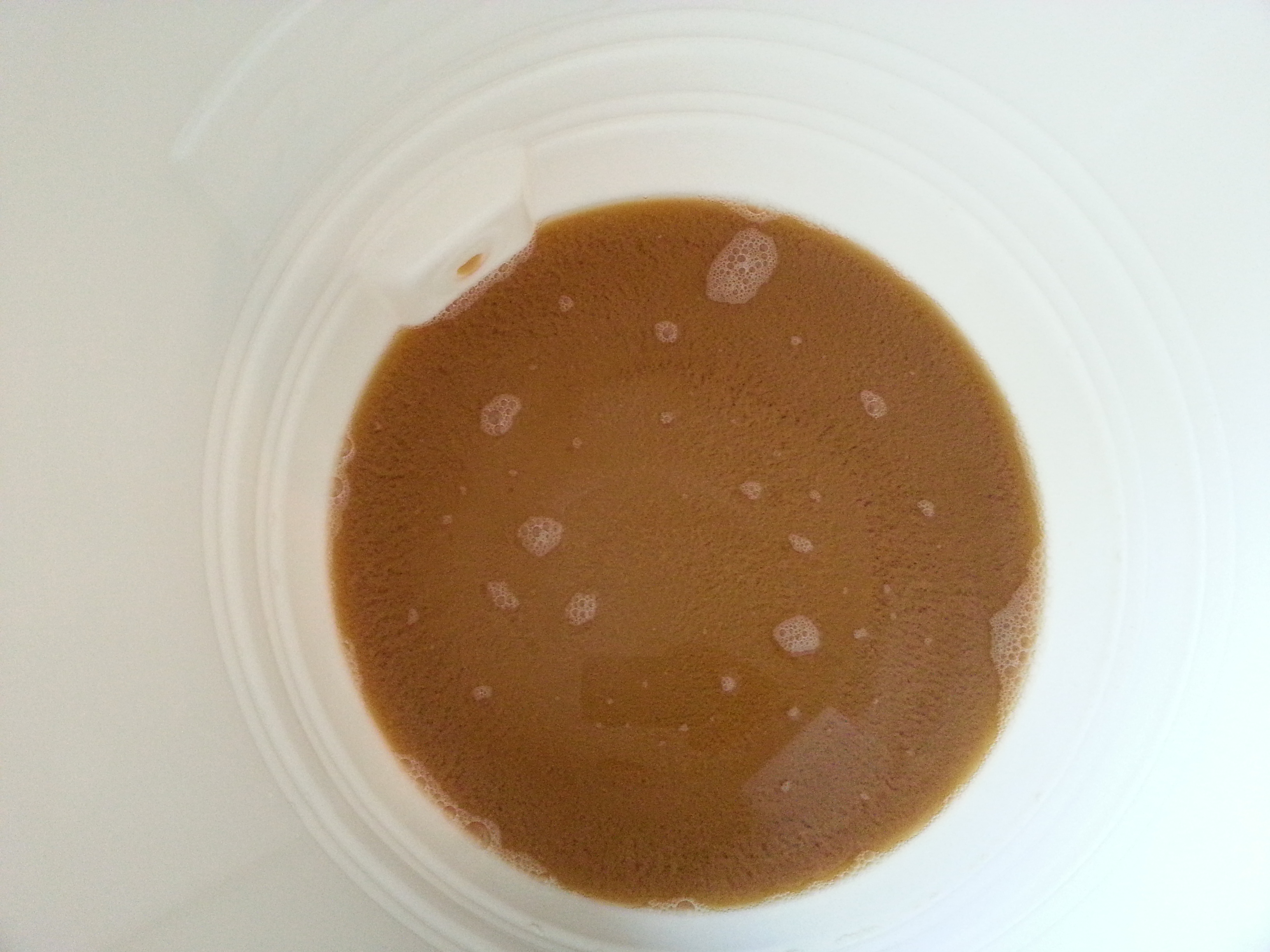 Wie schon gesagt habe ich das ausgeflockte Zeugs dann entsorgt und den Rest in dem neuen Fass mit Hefe gefüttert und bei 11 Grad zum schlafen gelegt.