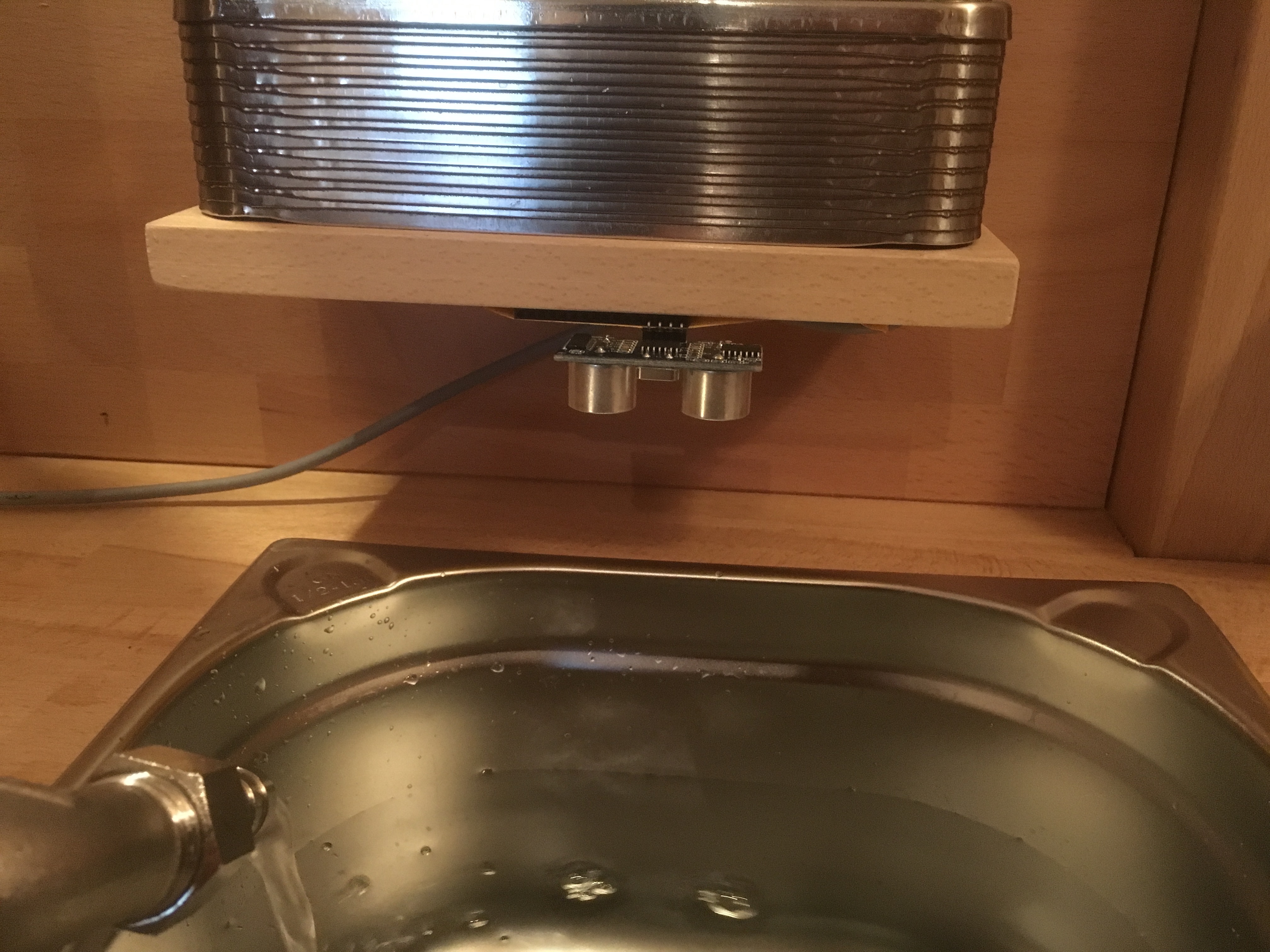 Den Ultraschallsensor bau ich jetzt noch schön in das Holz mit ein.