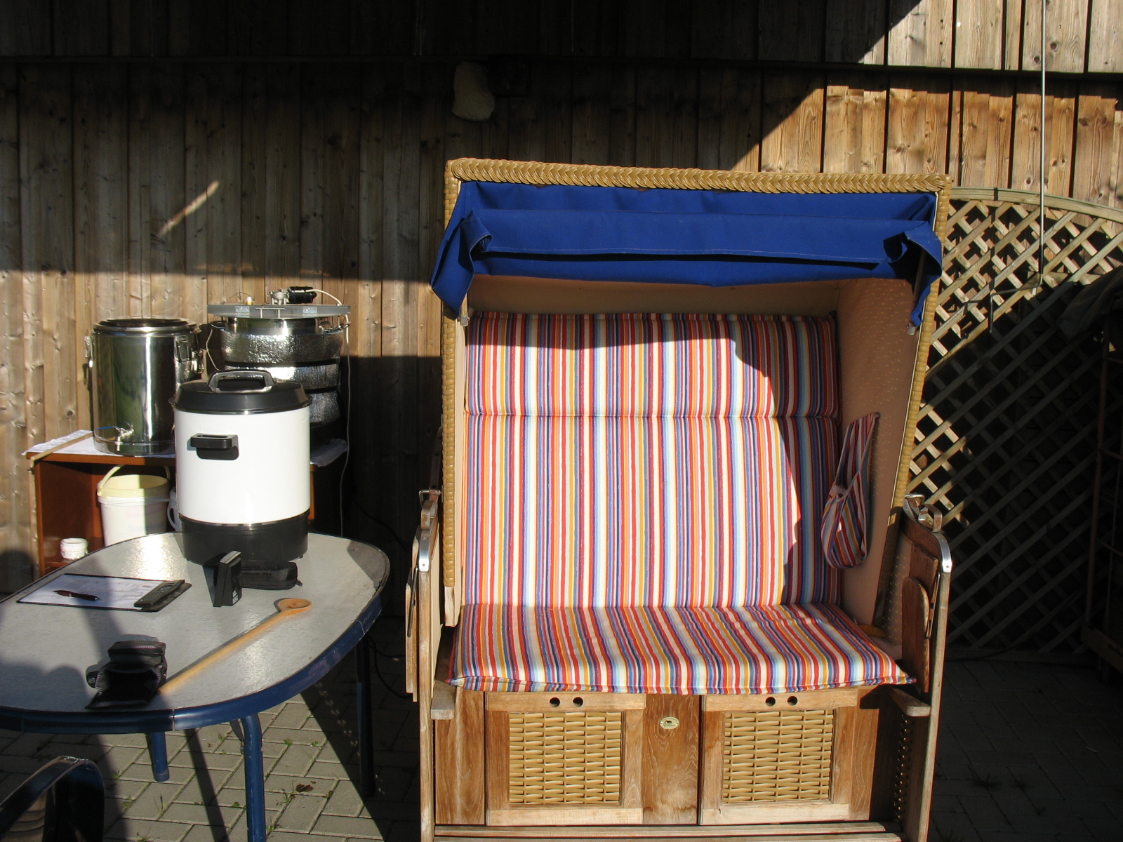 es ist wie immer alles gut gegangen. Während des Brauens stehen die Schafe hinter mir am Zaun