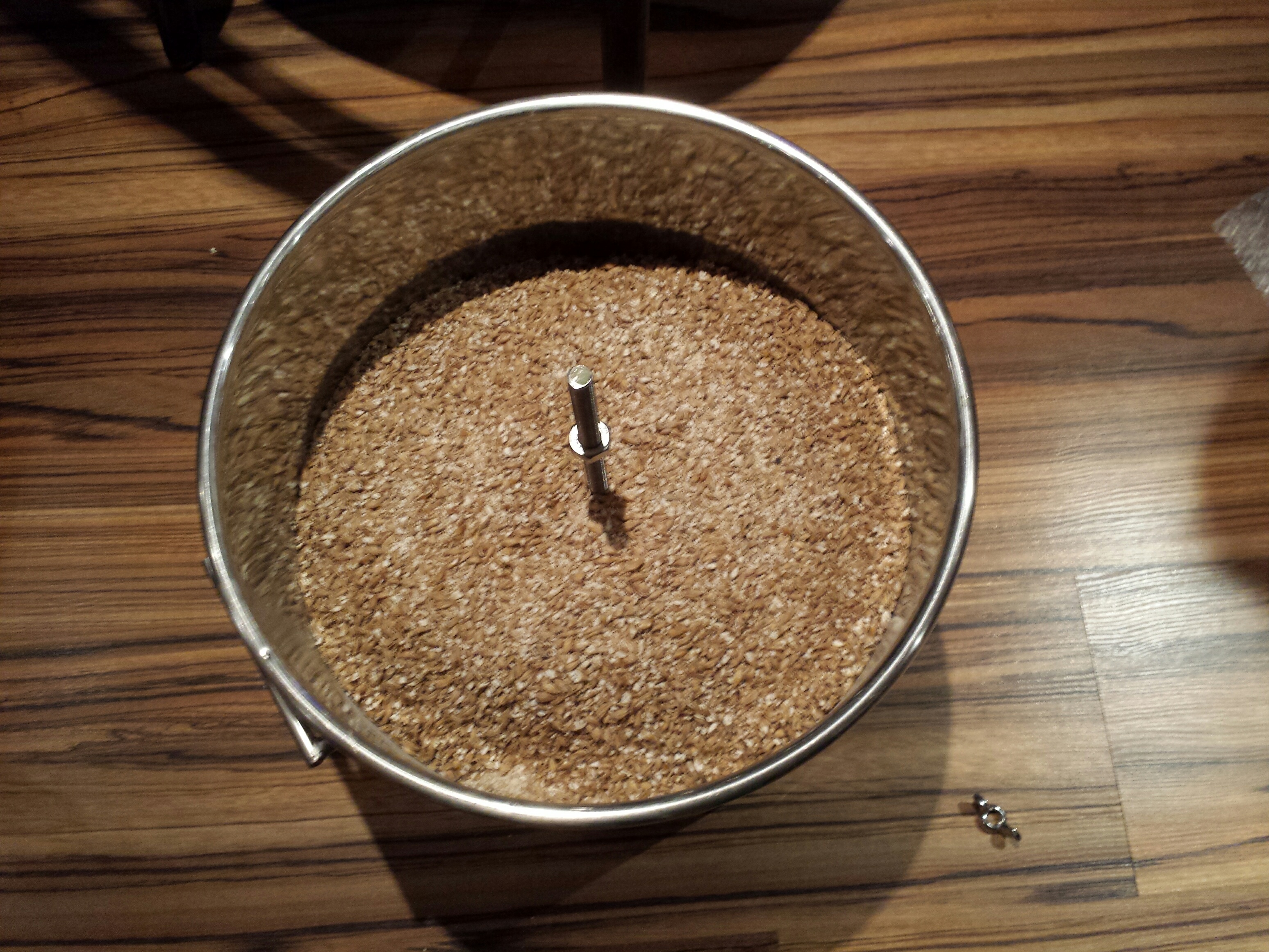 Begonnen habe ich mit 5,2 kg Pilsner Malz. Nach dem Einschalten spült die Pumpe auch gut durch. Erst hatte ich oben 2 Lochbleche mit 2mm Löchern und dazwischen ein 1mm Edelstahl Gewebe. Nach dem Reinschauen und Umrühren zwischendurch habe ich das Gewebe dann rausgenommen, es geht denke ich auch ohne. Beim Abnehmen des oberen Blechs hing das ganze Malz oben aber das ist vermutlich normal. Die Steuerung lief so weit, nur das Display steigt manchmal aus. Muss wohl ein neues kaufen. Kochen geht gut mit der Hendi Platte. Am Ende beim Reinigen war unter dem inneren Topf etwas angebrannte Würze, da muss ich noch nachbessern damit der innere Topf fest und ohne Spalt auf dem Boden sitzt.