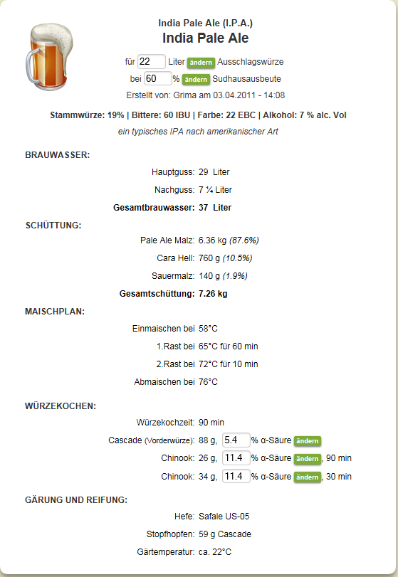 ich habe noch immer so meine Probleme mit der Einschätzung/Berechnung der Hopfenmenge welche ins Bier soll.