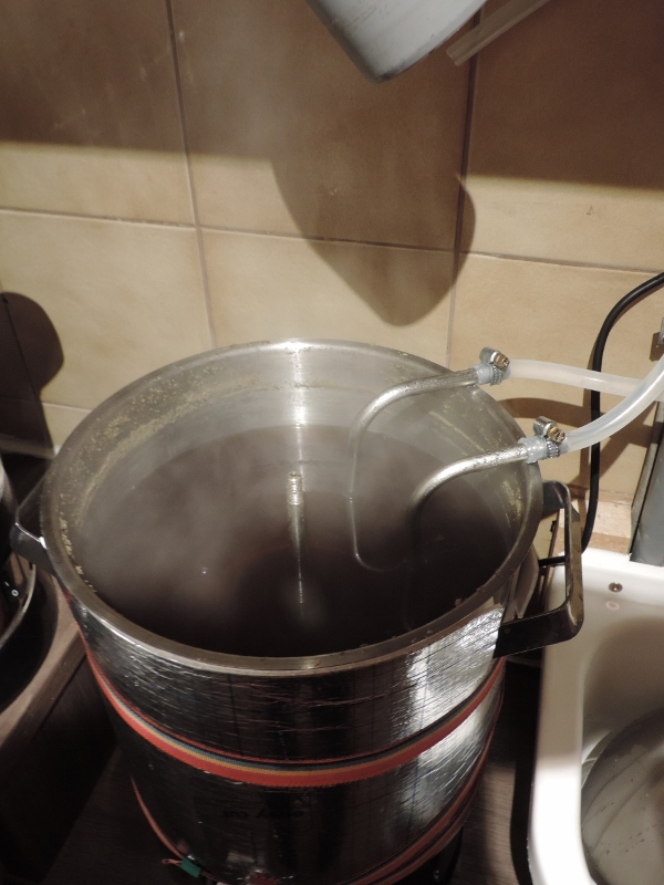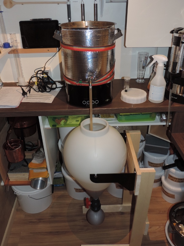 Achja, das Brauwasser ( 18 Liter ) habe ich schon am Vortag eingestellt.