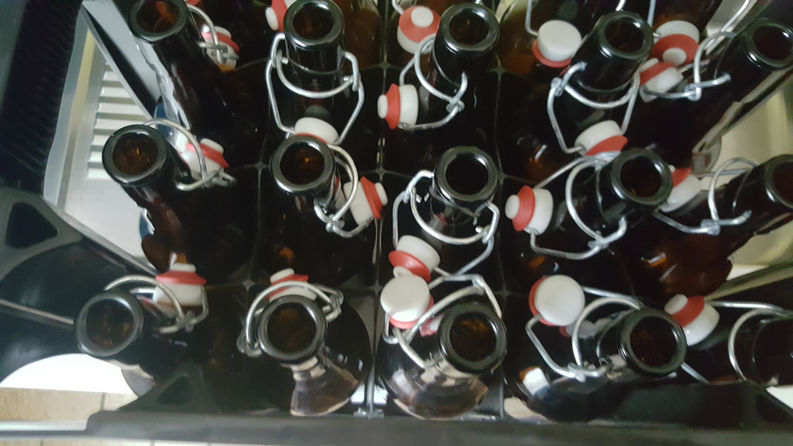 Die Kästen von Auer Packaging schauen wirklich hervorragend aus und wie Kraftwerk-Bräu geschrieben hat passen 0,5L Bügelflaschen mit 69,5mm Durchmesser perfekt hinein. Ich war schon etwas nervös weil gestern nur 2 der 8 Kästen geliefert wurden aber heute kam der Rest.