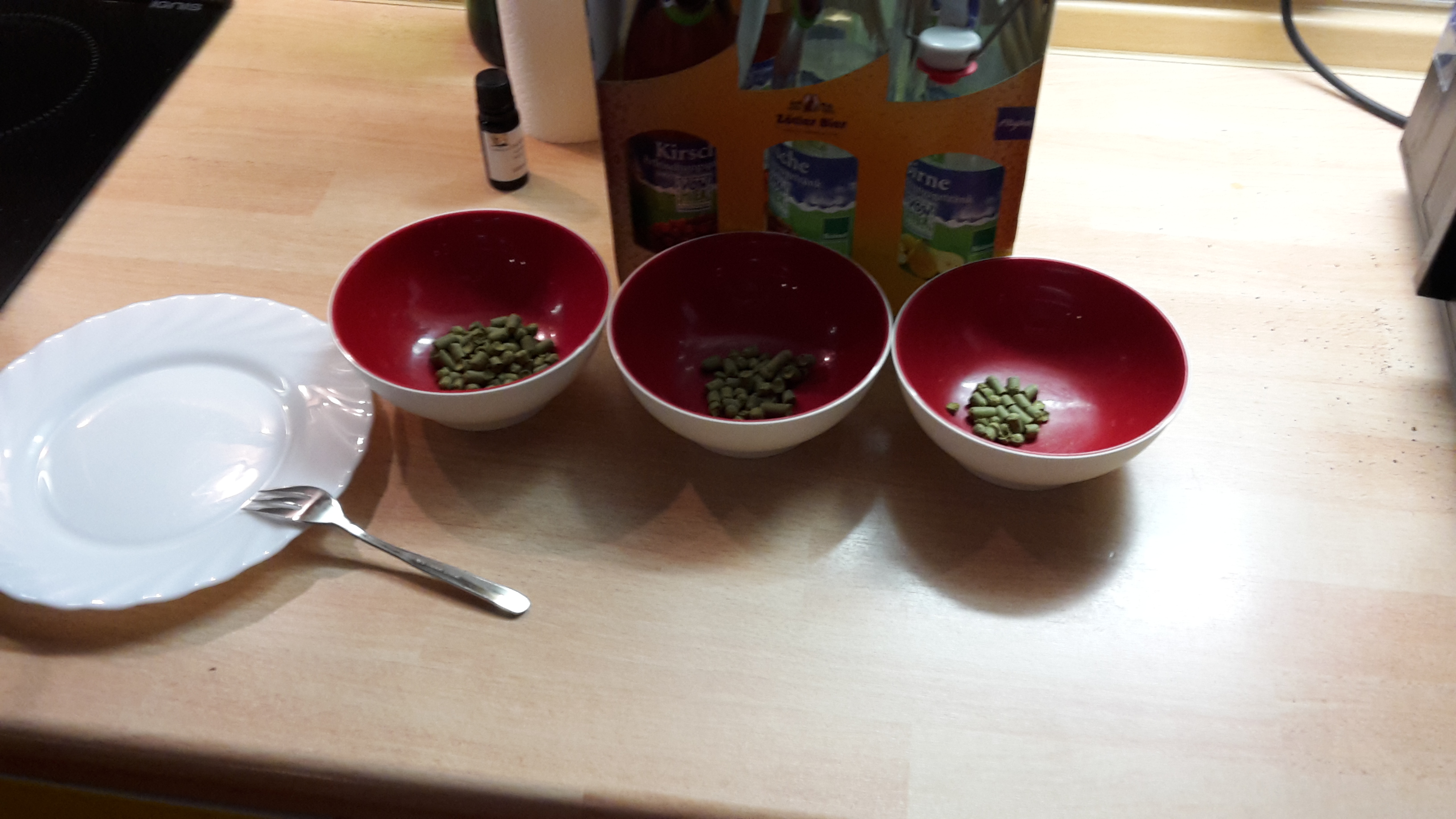 Die drei Hopfengaben vorbereitet