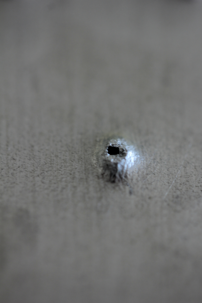 Solch ein Blech gibts nur mit Handarbeit, ohne Traufkante wird das nähmlich sonst nix. Also Hammer und Stahlnagel raus und mal eben 2000 Löcher geschlagen damit das hier entsteht: