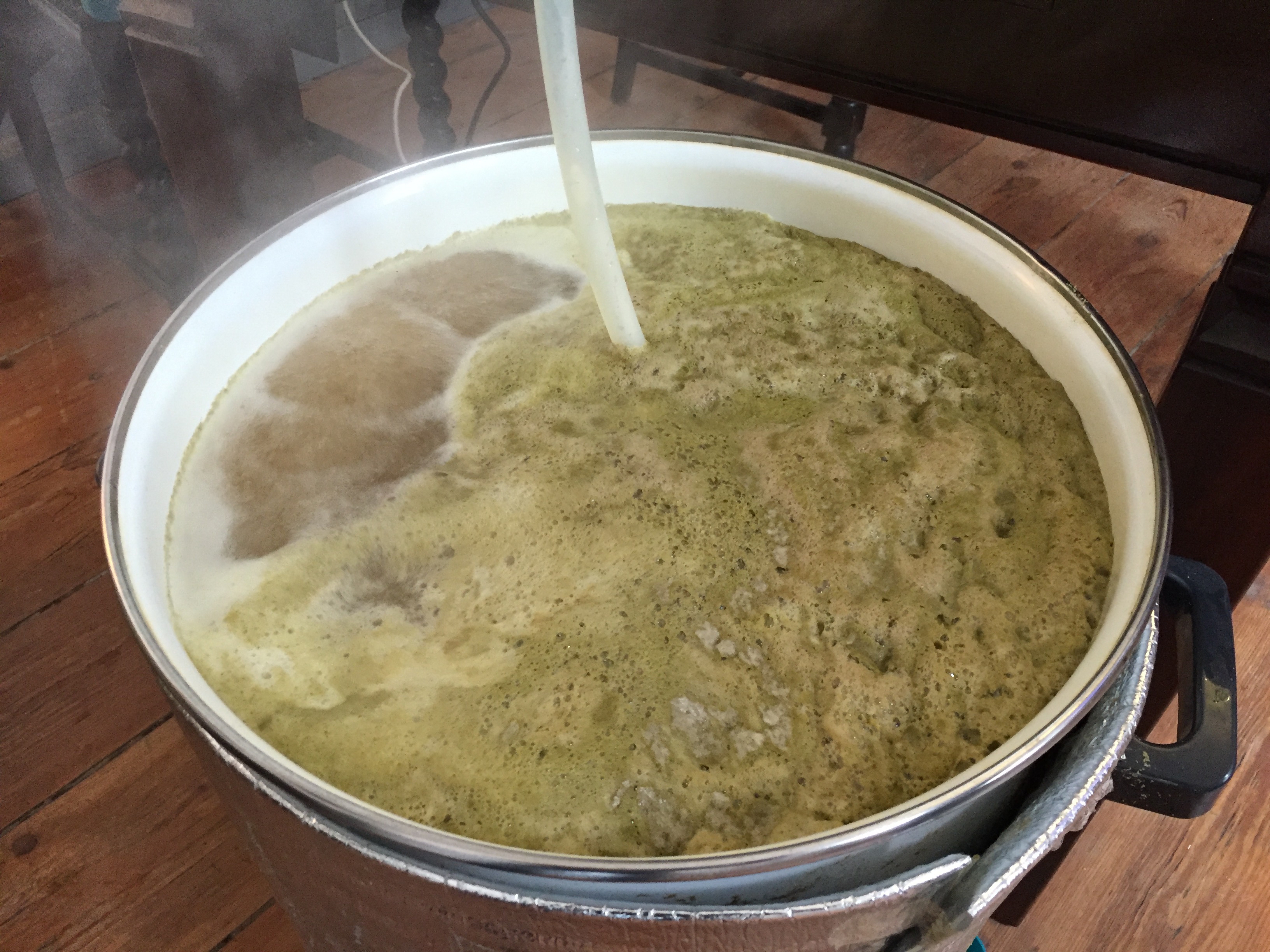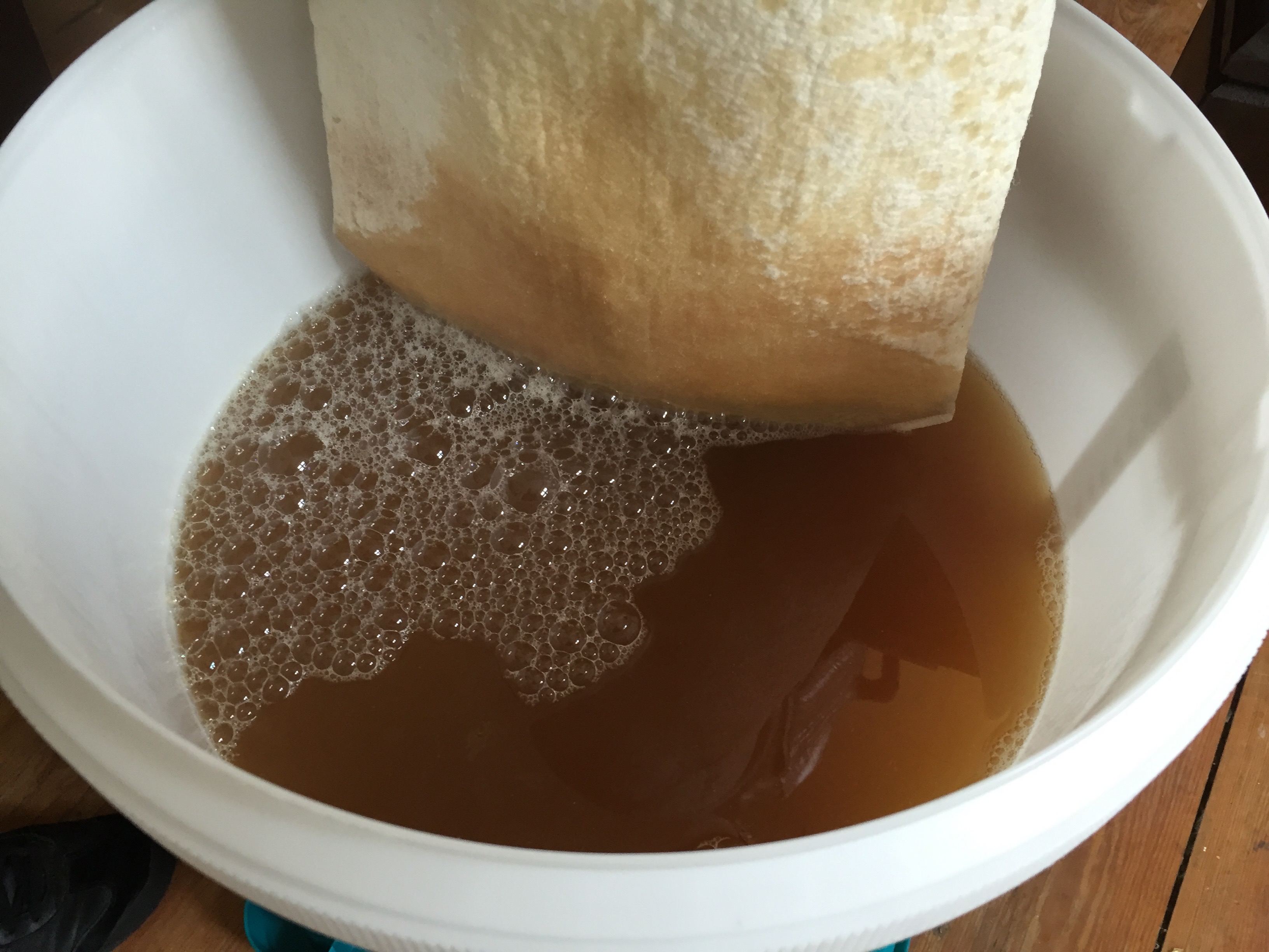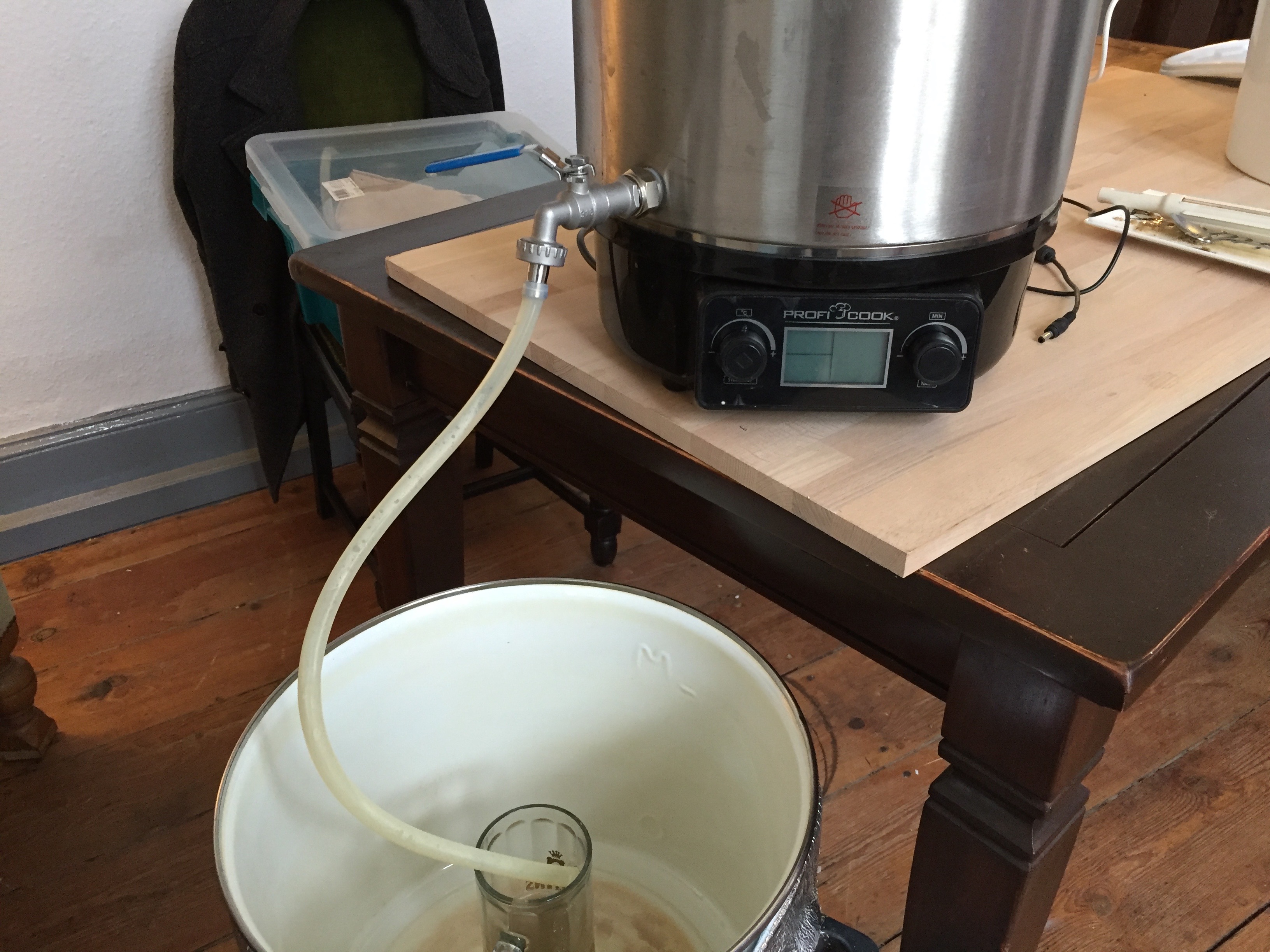 Es geht los Das Rührwerk leistet gute Arbeit ...der Proficool leider nicht(er zeigt die Temperatur oftmals falsch an-ein Krampf!) Jodprobe okay Lasst uns läutern Bis es klar ist Hopfenkochen(Vorderwürzehopfung und in den Whirlpool) Trubkegel Ab in den Gäreimer
