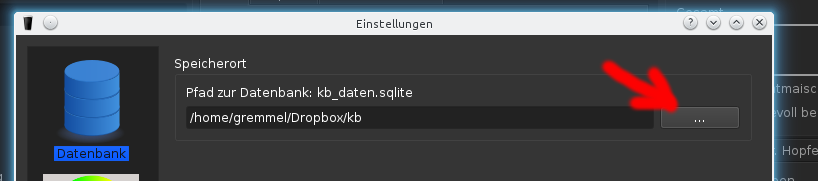 Mein Problem ist, das ich den Pfad von der Datenbank auf dem PC im KBH nicht auf Dropbox ändern kann.