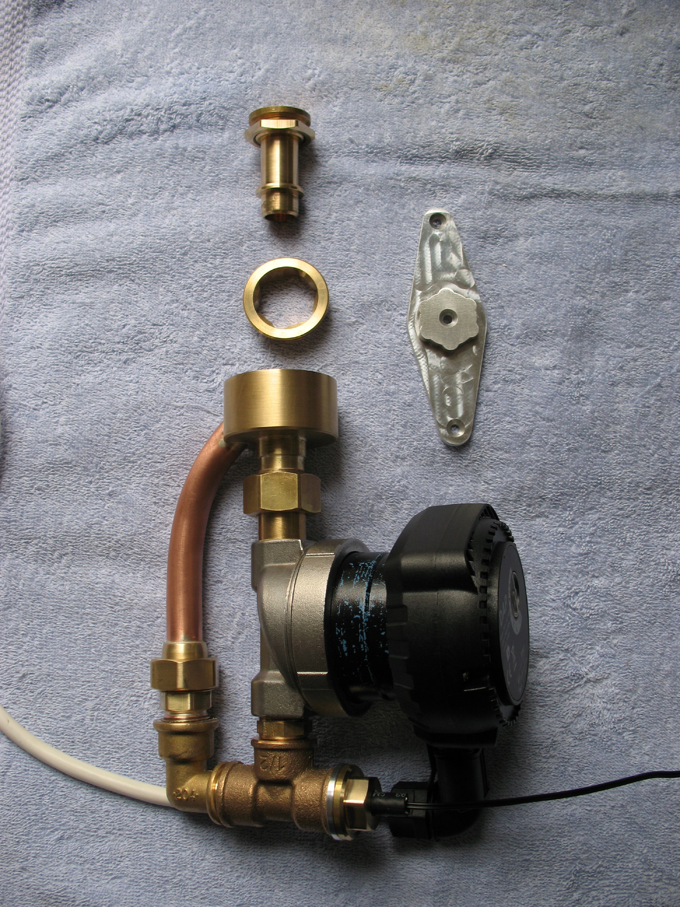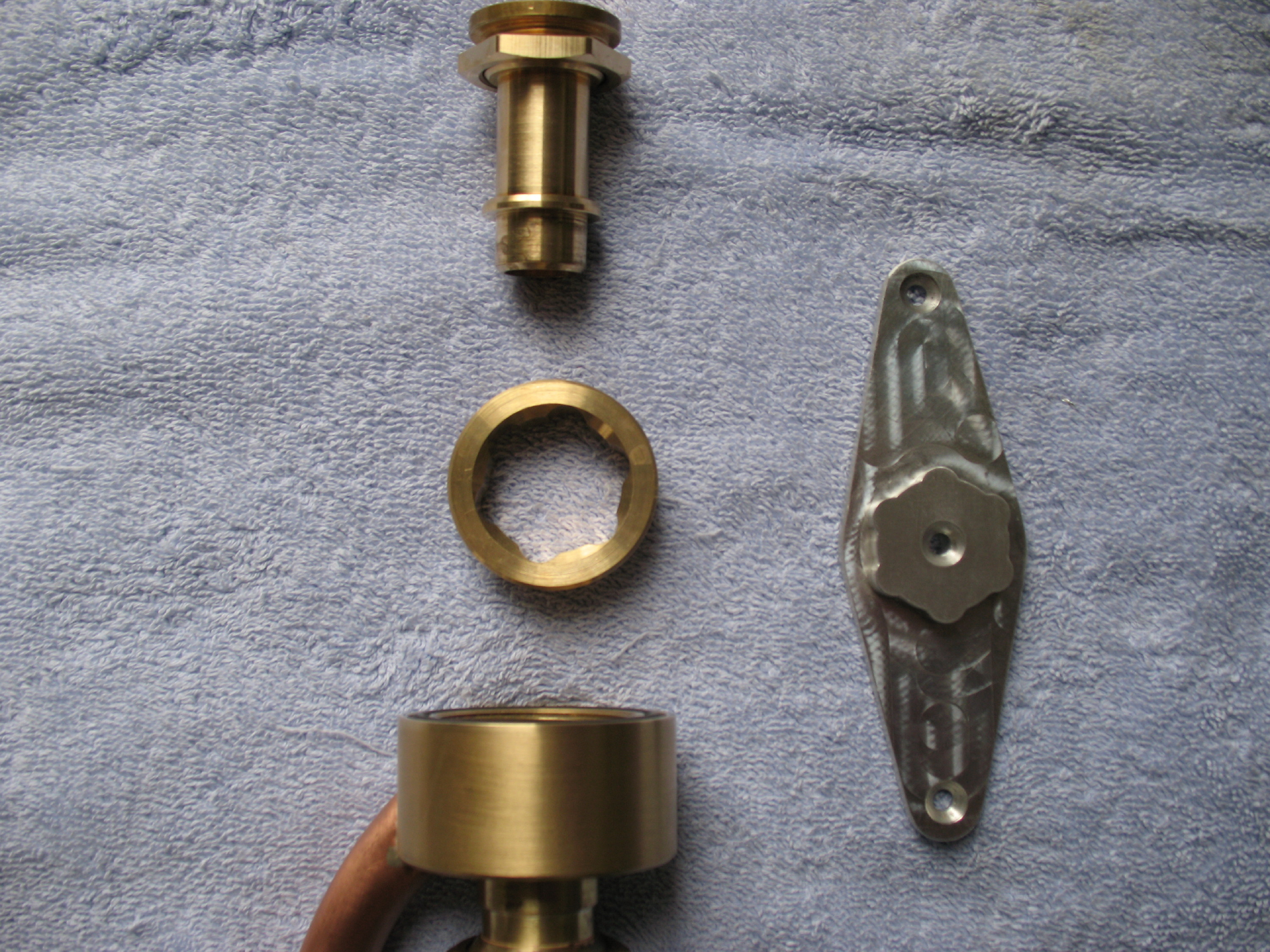 Etwas wollte ich aber anders machen als die meisten Erbauer dieser Anlagen. Ich will die ganze Pumpeneinheit mit einer einzigen Schraube entfernen können, zwecks Reinigung und eventuellem Service oder Reparatur. Angesogen wird in der Mitte rund um das Steigrohr welches den Malztopf via Pumpe mit Flüssigkeit versorgt. Für den Ausbau des Ganzen muss ich lediglich die grosse Schraube lösen und kann alles problemlos nach unten herausziehen. Abgedichtet wird alles mit Viton O Ringen. Den Rest hat man in irgend einer Form hier schon einmal oder mehrmals gesehen.