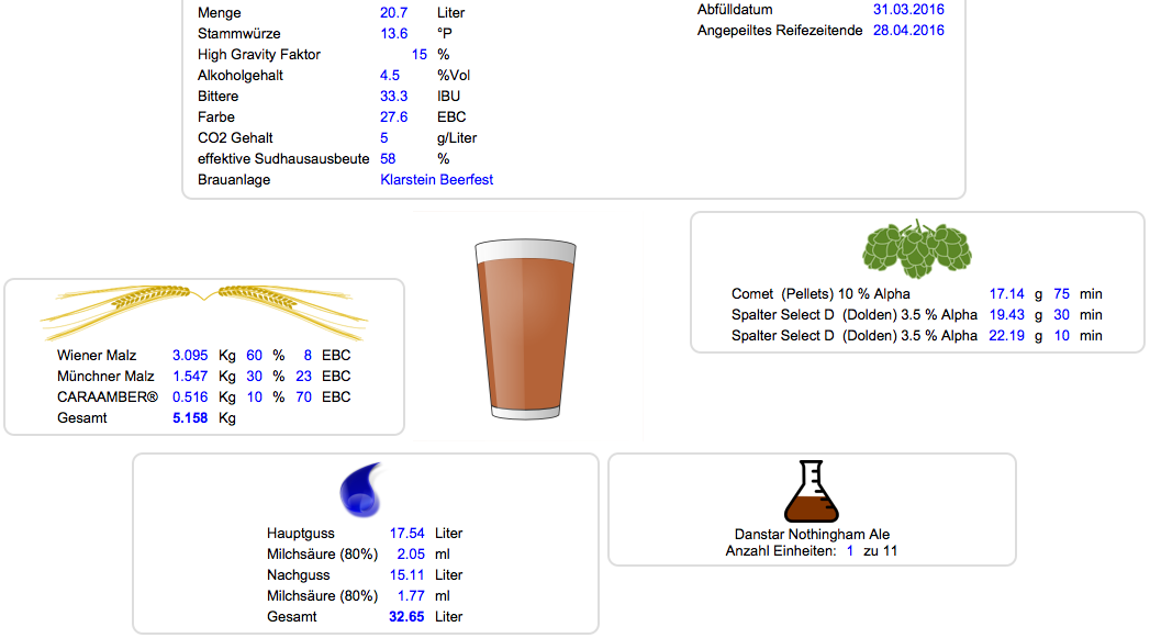 Wieviel unvergärbare Zucker ich produziert habe, weiß ich leider nicht. Ich habe 17,5 l Wasser mit 73°C und 5,15kg Schüttung mit 10°C eingemaischt und bin bei 66-67°C gelandet. Temperaturverlust während 75min Kombirast ca. 1 °C. Wenn ich nicht völlig falsch gemessen habe, sollte da also auch was Vergärbares bei rausgekommen sein.