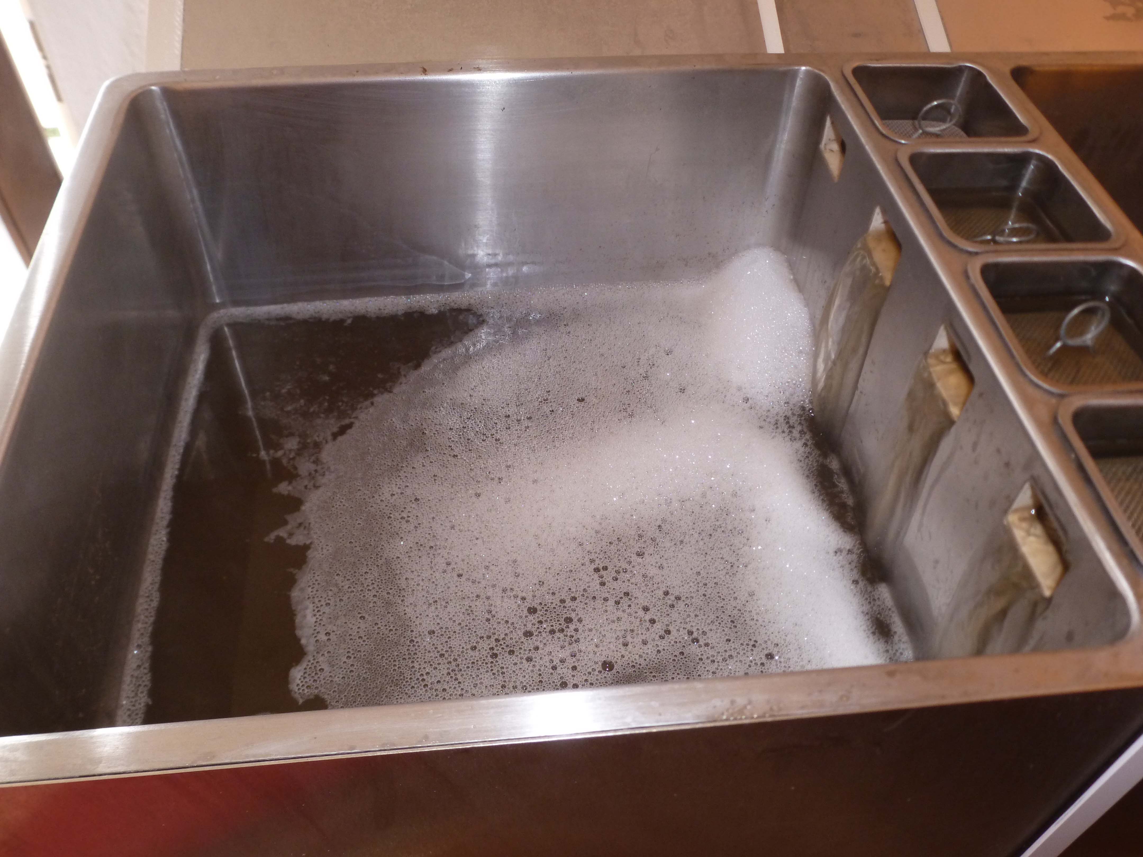 Das Reinigungsprogramm, zumal ohne Chemiemittel (man testet derzeit verschiedene Spülmaschinentabs zum Einlegen in die Hopfenbehälter des Brewie) und nur mit zimmerwarmem Wasser, konnte daher der Situation nicht ganz Herr werden.