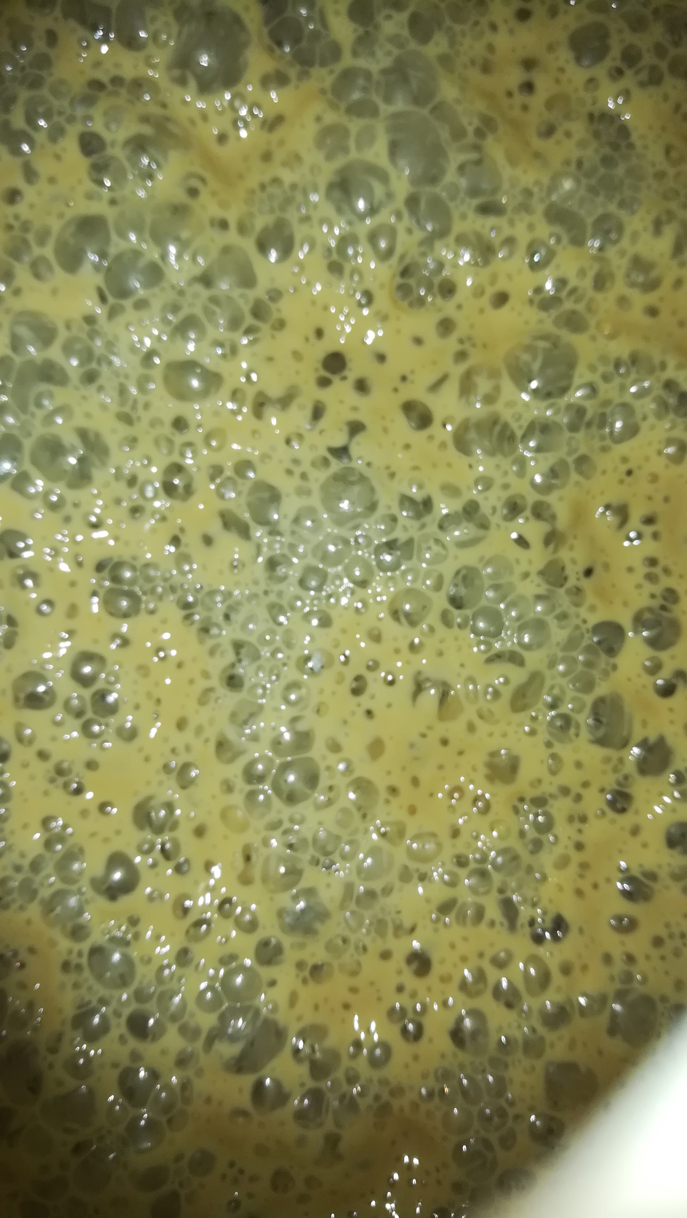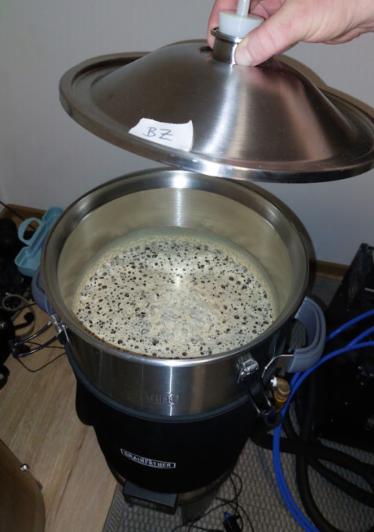 Heute ist die Gärung nur noch minimal wahrnehmbar. Was mir dabei auffiel, dass sich oben eine dicke Hefeschicht gebildet hat, die bei den anderen obergärigen Hefen nicht so ausgeprägt war.