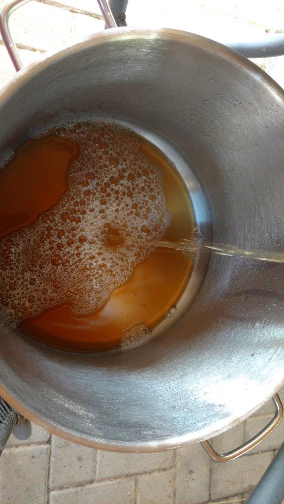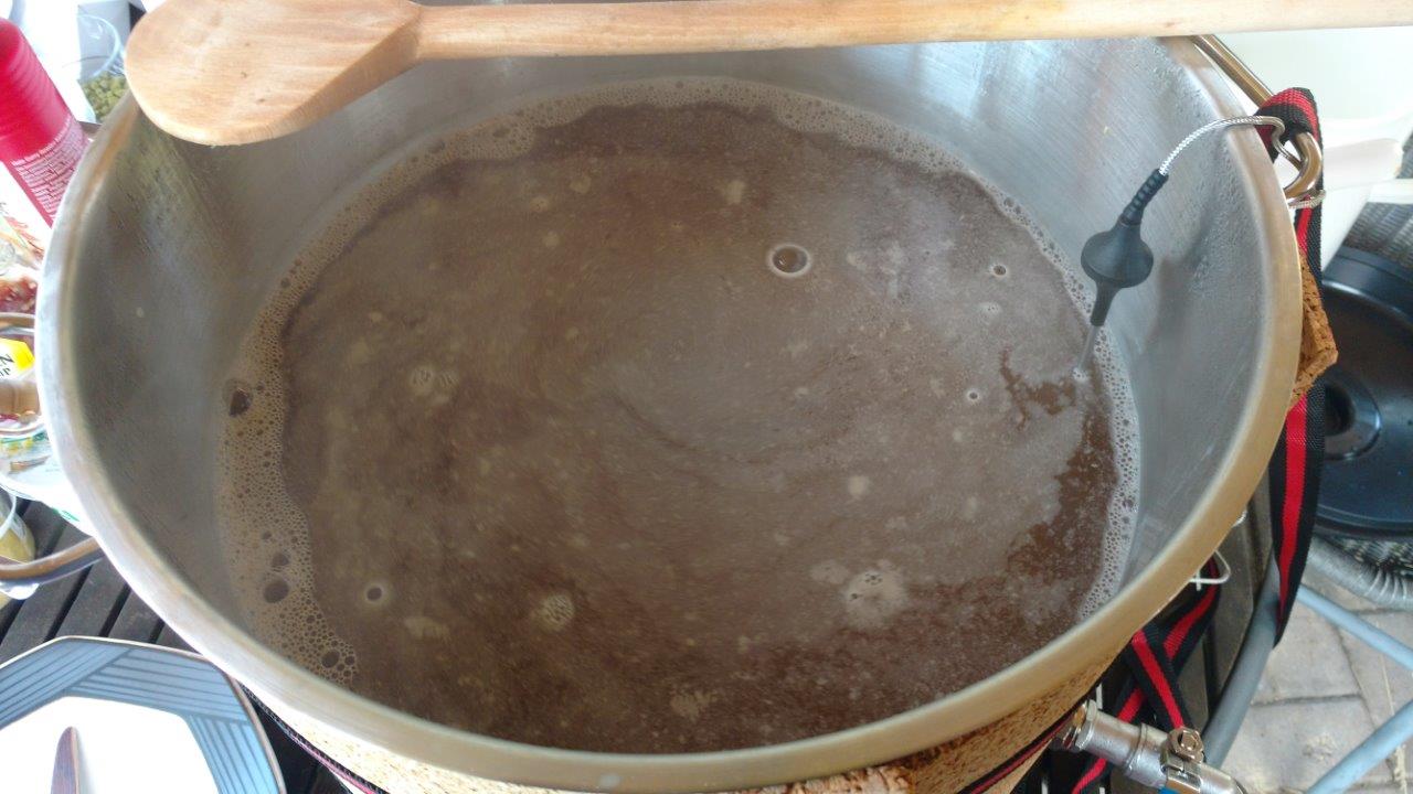 Der zweite Sud, diesmal mit Rührwerk und Tauchsieder zum Heizen. Gebraut wurde ein Singlehop Pale Ale (Hüll Melon).